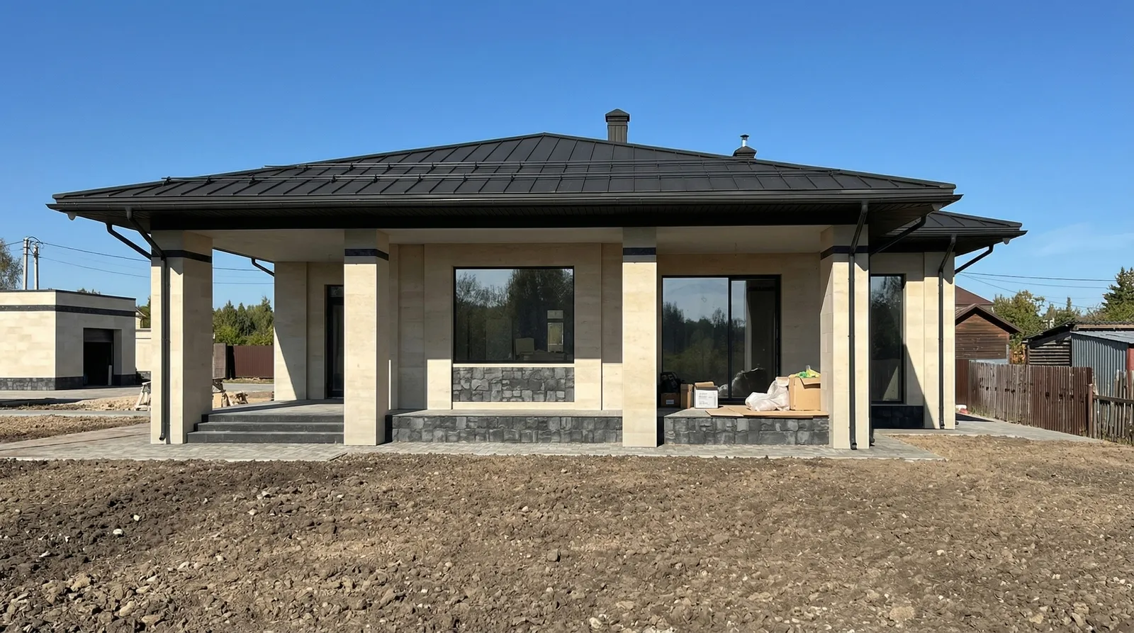Срок зависит от площади дома, сложности проекта и выбранной комплектации. В среднем строительство занимает от 3 до 9 месяцев.