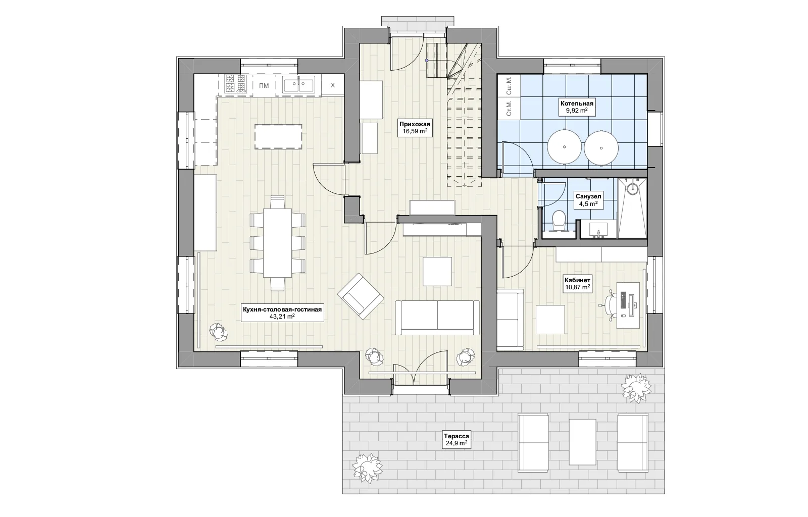 | Напольные покрытия | Ламинат, кварцвинил, инженерная доска и подложка подбираются отдельно |